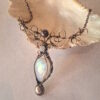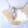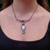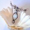 Let the Goddess shine in this stunning Rainbow Moonstone necklace! Your perfect inner radiance will radiate to all around you through the sensuous archetype Aphrodite, Goddess of love and beauty. The main stone is guarded top and bottom with freshwater Pearls of wisdom and a Blue Lace Agate is central for strong yet compassionate communication. The necklace frame is 7cm x 7cm and the full length of the necklace is approx. 45cm. It is designed to sit on or just below the collar bone. The modeled photo depicts the chain at full length, it can be shortened by inserting the hook closure through the chain links.