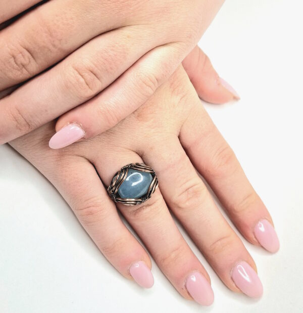 This is a chunky style ring with the beautiful Aquamarine and its oceanic vibe. Rings are very powerful to wear, there is alot of power in our hands just think about all that your hands do in just one day!