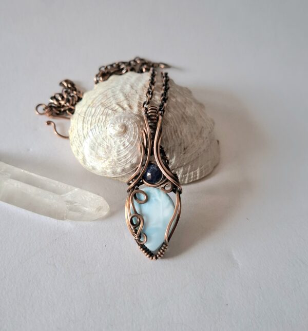 Materials: Larimar, Sapphire faceted, Copper wire
