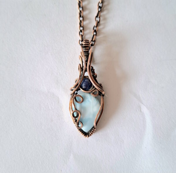 This item is a one-off piece hand wrapped in antiqued and polished solid copper wire. Purchase includes a complimentary 45cm antiqued and polished solid copper 2.4mm oval cable chain with hook closure, care instructions, stone meaning, jewellery polishing pad and gift box.