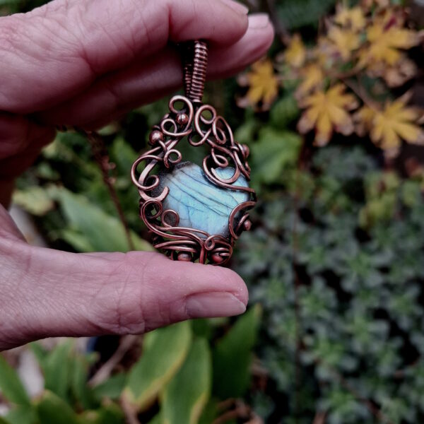 This item is a one-off piece hand wrapped in antiqued and polished solid copper wire. Purchase includes a complimentary 45cm antiqued and polished solid copper 3.1mm oval cable chain with hook closure, care instructions, stone meaning, jewellery polishing pad and gift box.