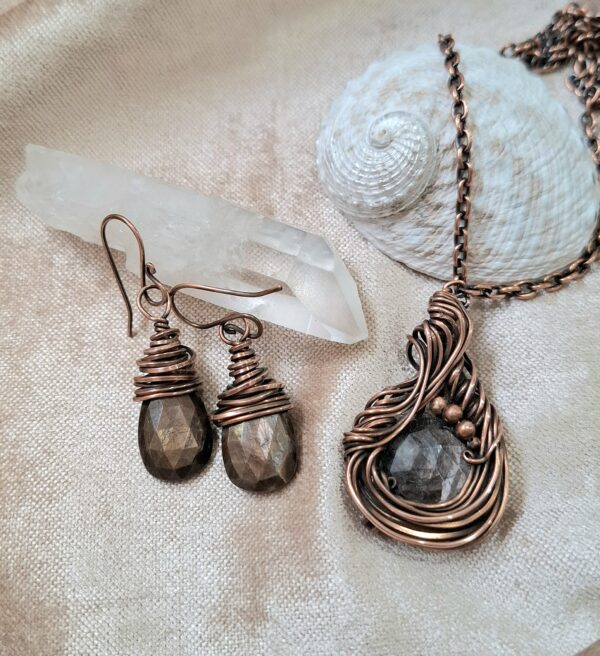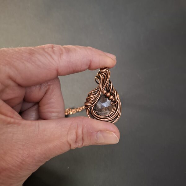 This item is a one-off piece hand wrapped in antiqued and polished solid copper wire. Purchase includes a complimentary 45cm antiqued and polished solid copper 3.1mm oval cable chain with hook closure, care instructions, stone meaning, jewellery polishing pad and gift box.