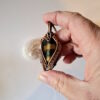 This large handmade Tigers Eye pendant features a woven frame, a Divine Feminine piece. Allow the benevolent energy of this Tigers Eye to slow and stabilise your energy especially if feeling a bit frazzled or scattered. It is an invitation to slow and temper the throat chakra, to refrain oneself from unthoughtful or abrupt reactions. Retreating from the external chaos allows for the space of balance. Ancient tools for modern times.
