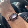 This handcrafted bracelet has a hook over style clasp and can be worn either casually or with formal wear. It looks equally stunning either way.