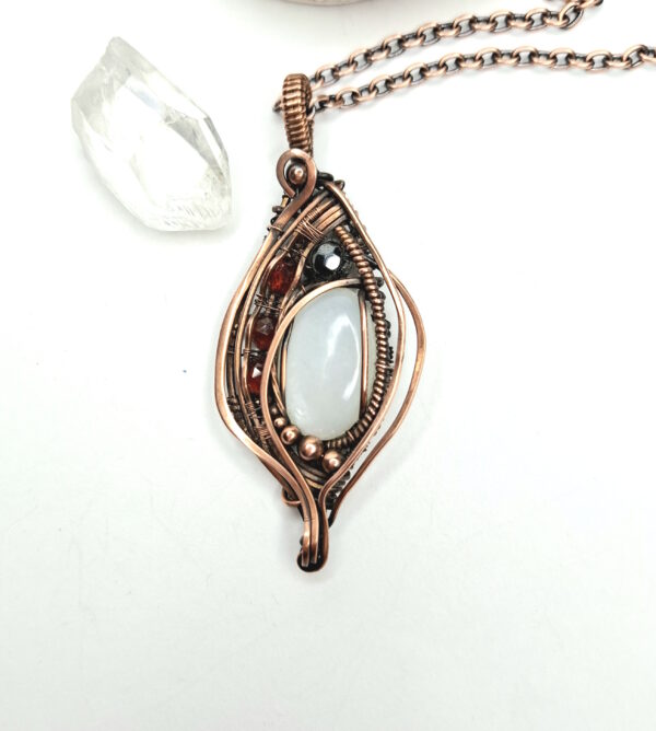 White Moonstone Pendant with Garnets and Hematite